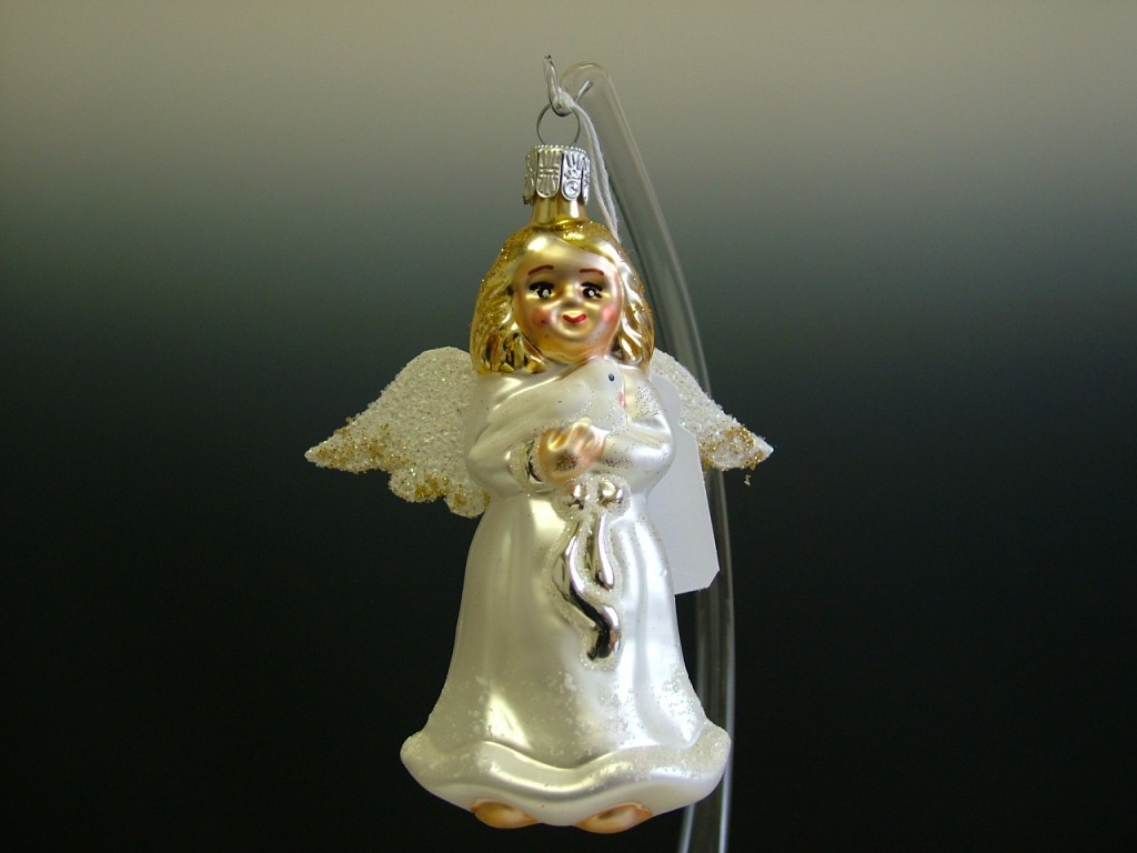 Detail produktuSkleněná vánoční ozdoba, forma, anděl s holoubkem velký, mat, bílý, dekor, velikost 10x6 cm + křídla. Foto ilustrační