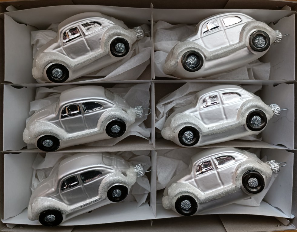 Detail produktuSkleněná vánoční ozdoba, forma, auto Brouk, mat, bílé, dekor, velikost 11x5 cm. U varianty balení G1/1 ks je cena včetně dárkové krabičky. Foto ilustrační