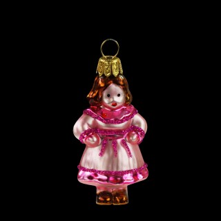Skleněná ozdoba, forma, panenka, mat/lesk, velikost 6 cm. Foto ilustrační, dekor a barva na figurce se může lišit