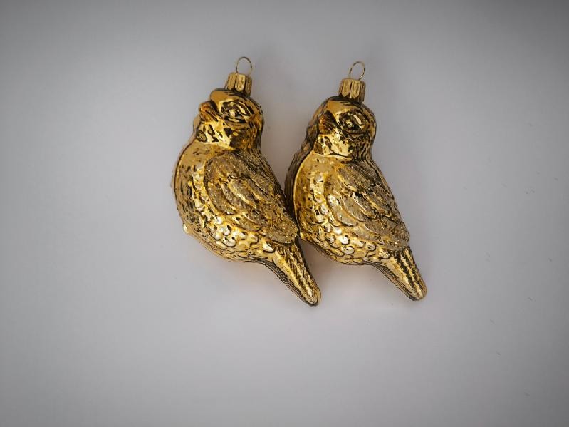Skleněná vánoční ozdoba, forma, ptáček větší zlatý, lesk/mat. Foto ilustrační
