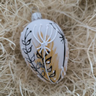 Skleněná ozdoba, vejce velikonoční, bílé, forma, ručně malovaný barevný dekor, 2 velikosti, foto ilustrační