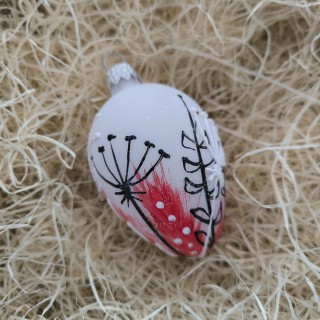 Skleněná ozdoba, vejce velikonoční, bílé, forma, ručně malovaný barevný dekor, 2 velikosti, foto ilustrační