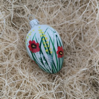 Skleněná ozdoba, vejce velikonoční, bílé, forma, ručně malovaný barevný dekor, 2 velikosti, foto ilustrační