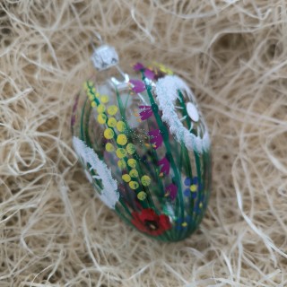 Skleněná ozdoba, vejce velikonoční, čiré, forma, ručně malovaný barevný dekor, 2 velikosti, foto ilustrační