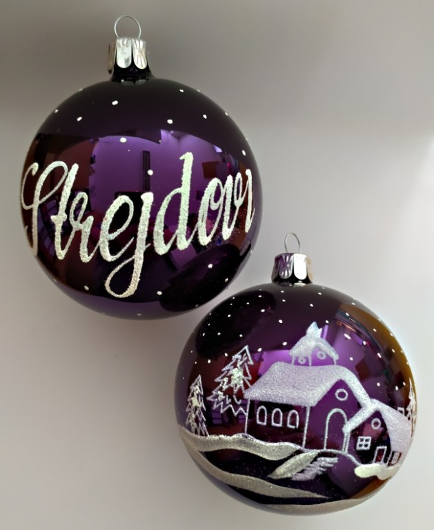 Skleněná vánoční ozdoba s textem/jménem na přání v dárkové krabičce. Text (jméno), který má být na přední straně koule napsán, zadejte do textového okénka po vložení vybrané koule do nákupního košíku, případně do poznámky za fakturačními údaji v objednávce. Foto ilustrační. Text i dárková krabička v ceně.