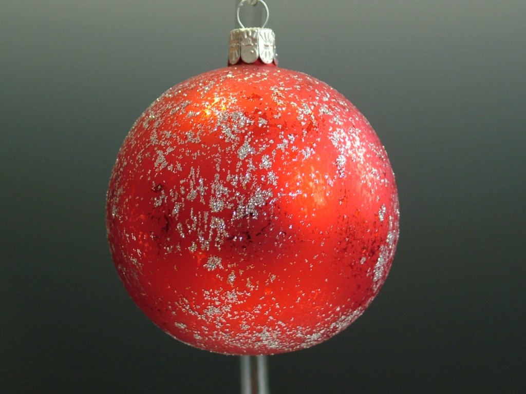 Detail produktuSkleněná vánoční ozdoba ve tvaru koule, hladká, červená, mat, hubkovaná lakem, stříbrná diamantina, více velikostí. Foto ilustrační