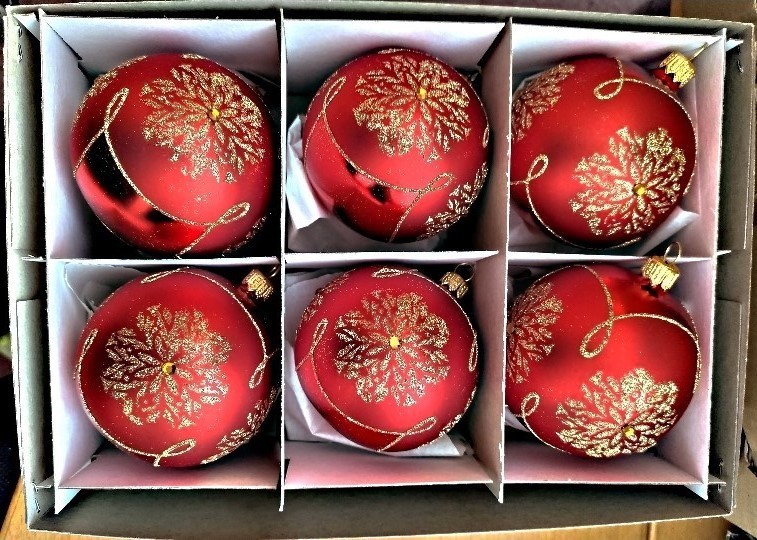 +420 731 683 257vanocniozdoby@slezska-tvorba.czSkleněná vánoční ozdoba ve tvaru koule, hladká, červená, mat, zlatý dekor se šatony, více velikostí. Foto ilustrační