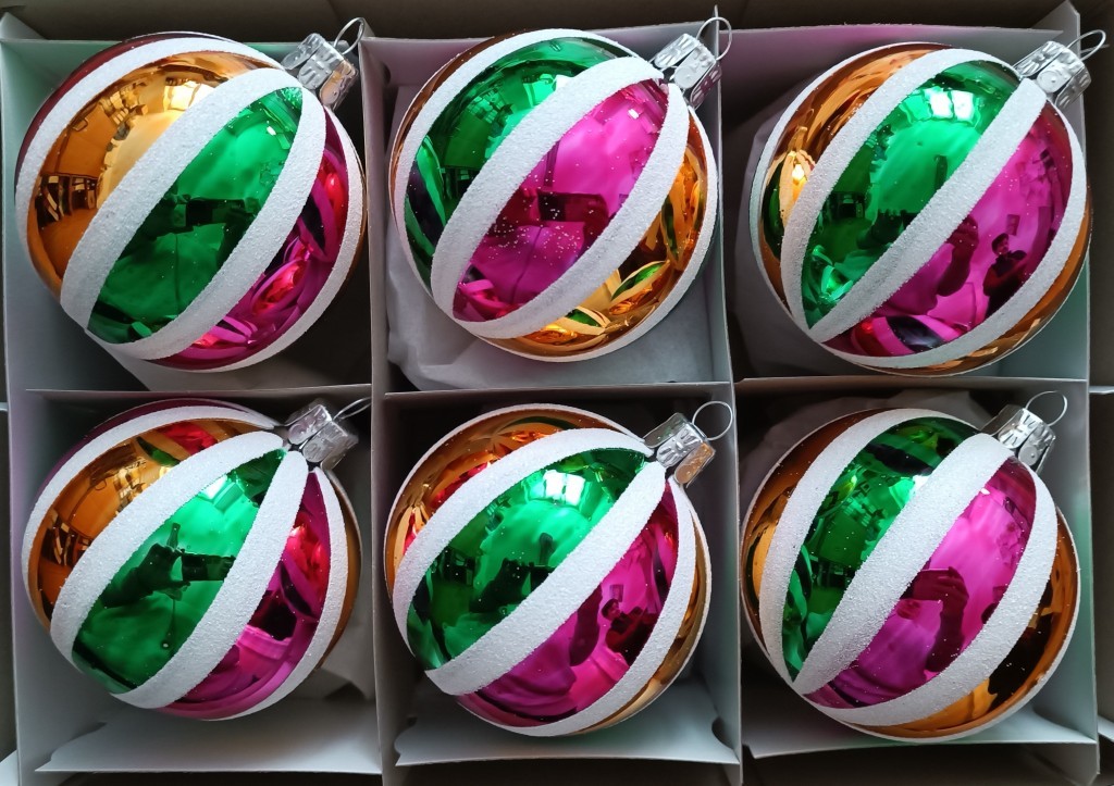+420 731 683 257vanocniozdoby@slezska-tvorba.czSkleněná vánoční ozdoba ve tvaru koule, hladká, barva ass, lesk, dekor/balónek, velikost 7 cm. Foto ilustrační.