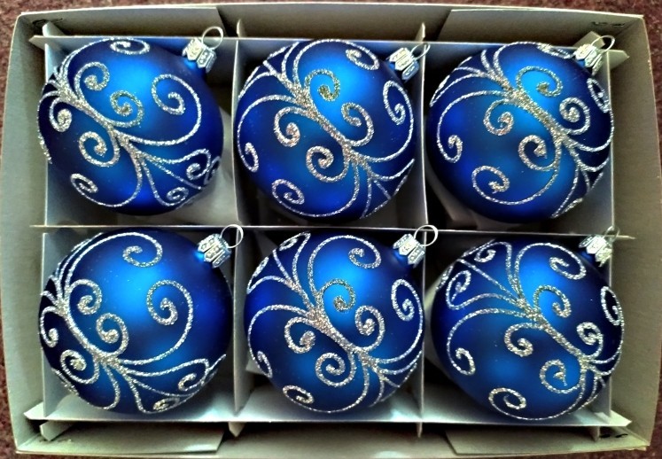 +420 731 683 257vanocniozdoby@slezska-tvorba.czSkleněná vánoční ozdoba ve tvaru koule, hladká, tmavě modrá, mat, stříbrný plastický dekor, více velikost. Foto ilustrační