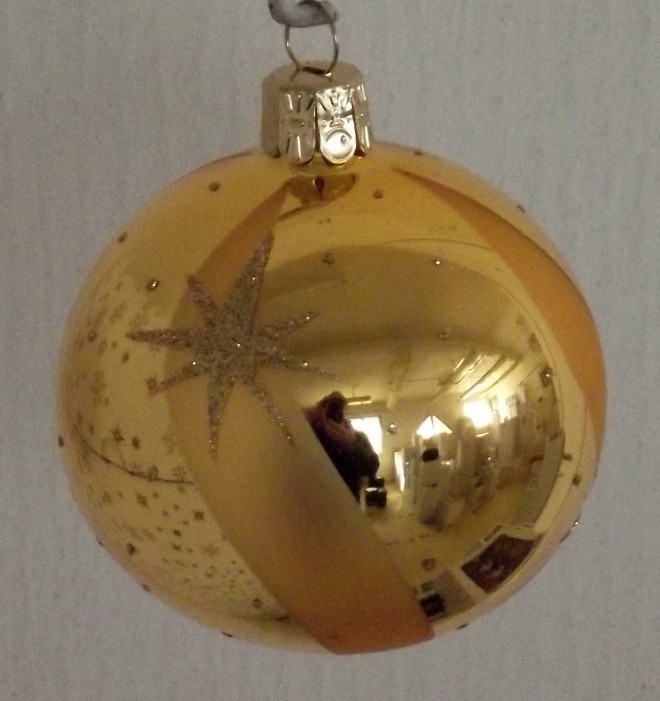 KOULE, SKLENĚNÁ, HLADKÁ, ZLATÝ LESK, ZLATÝ DEKOR HVĚZD