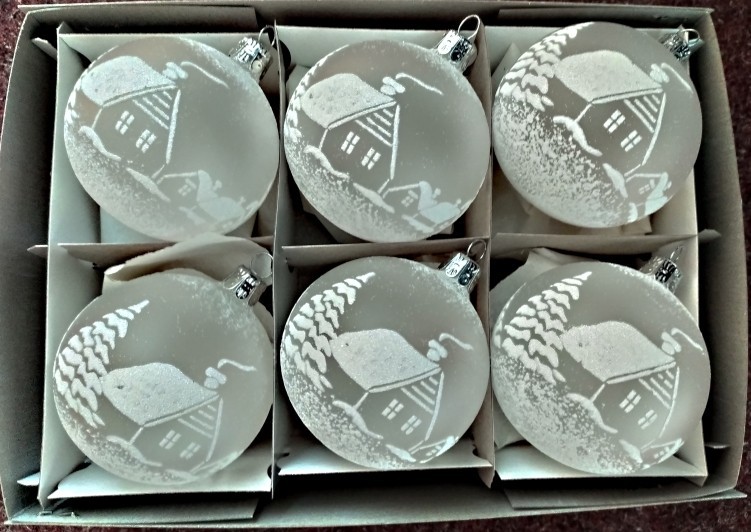 +420 731 683 257vanocniozdoby@slezska-tvorba.czSkleněná vánoční ozdoba ve tvaru koule, hladká, bílá průhledná, mat, dekor, více velikostí. Foto ilustrační