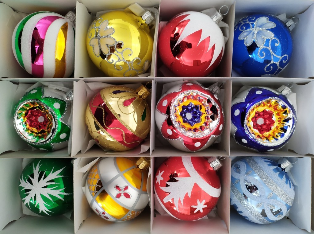 Vánoce připravujeme hlavně pro děti. Proč se tedy vzdávat pestrých barev, které děti tolik milují? Připravte si vánoční výzdobu v jásavých retro barvách. Nemůžete se rozhodnout, který vzor vybrat? Sortiment tradičních skleněných retro ozdob je to pravé pro Vás. Každá krabice je svým složením originál! Různé varianty balení, velikost koule 7 cm. Foto ilustrační.