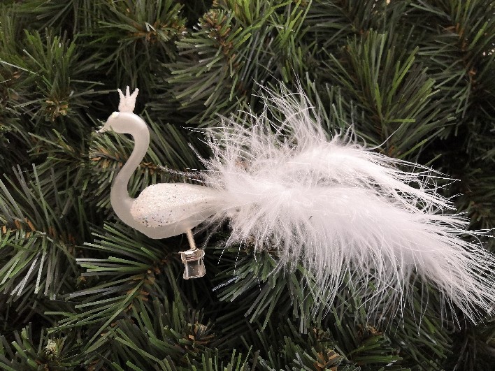 +420 731 683 257vanocniozdoby@slezska-tvorba.czSkleněná vánoční ozdoba, forma, labuť malá s korunkou, bílá průhledná s dlouhým bílým peřím, uvedená velikost bez peří