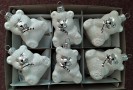 Detail produktuSkleněná vánoční ozdoba, forma, medvídek s hůlkou, bílý, mat, sypaný dekor, velikost 7x6 cm. Foto ilustrační