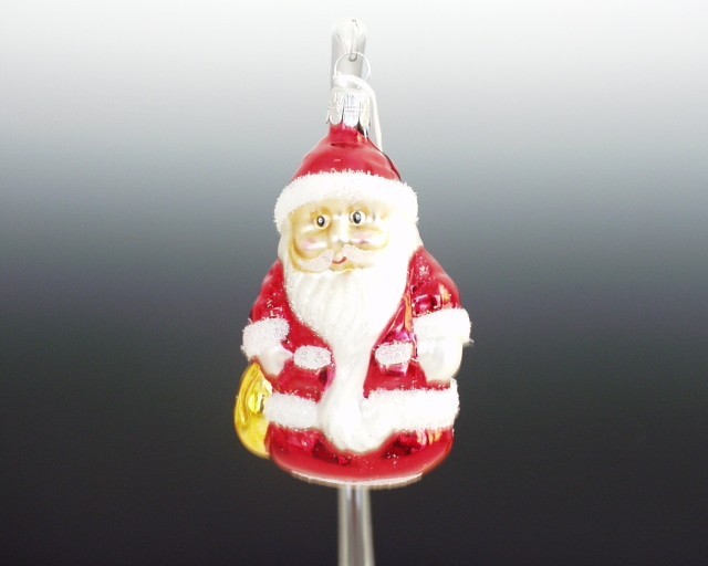 Detail produktuSkleněná vánoční ozdoba, forma, mikuláš dlouhý vous, mat, barevný, dekor, velikost 9x6 cm. Foto ilustrační