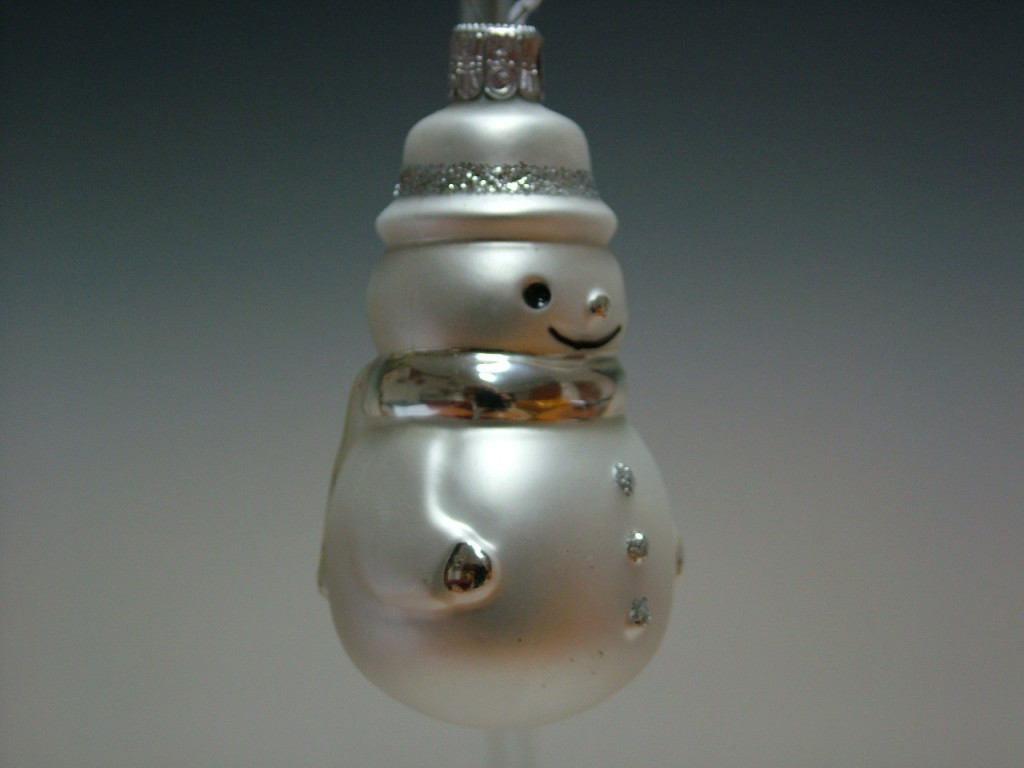Detail produktuSkleněná vánoční ozdoba, forma, sněhulák malý, mat, bílý, dekor, velikost 8x4,3 cm. Foto ilustrační