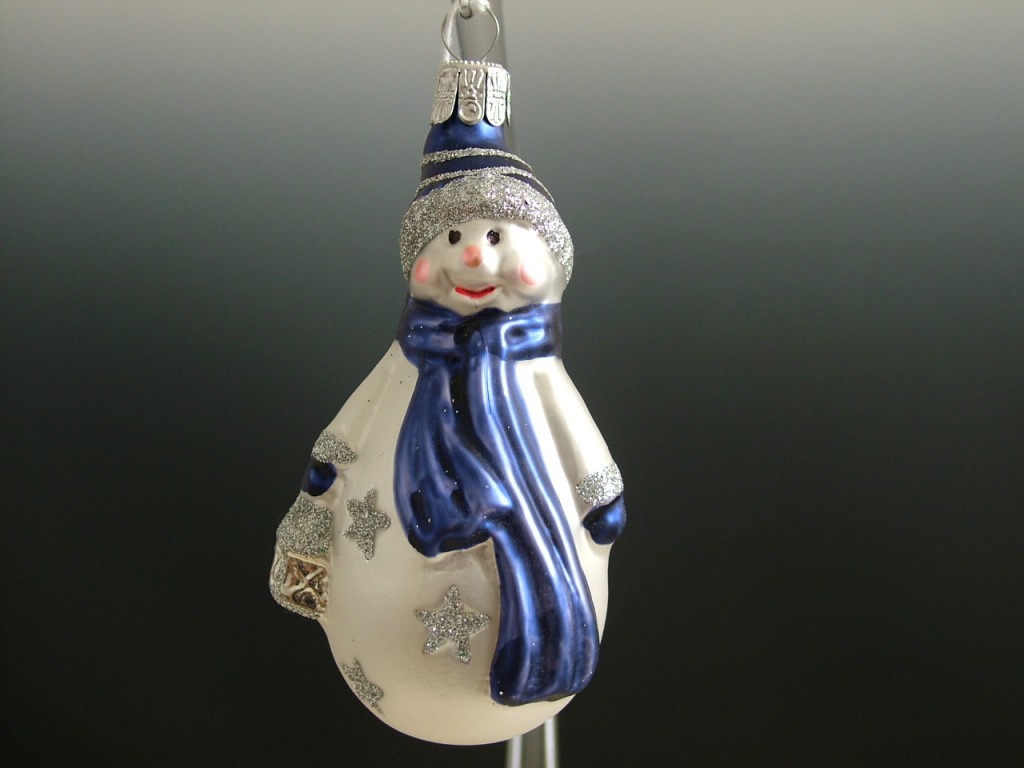 Detail produktuSkleněná vánoční ozdoba, forma, sněhulák s lucernou a hvězdy, bílý, mat,, barevný, dekor, velikost 10x5,5 cm. Foto ilustrační