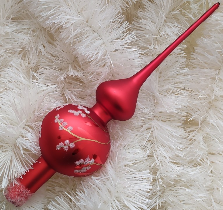 +420 731 683 257vanocniozdoby@slezska-tvorba.czSkleněná vánoční ozdoba ve tvaru špice, 1-kulová, hladká, červená, mat, malovaný větvičkový dekor po celé kouli špice, více velikostí. Foto ilustrační