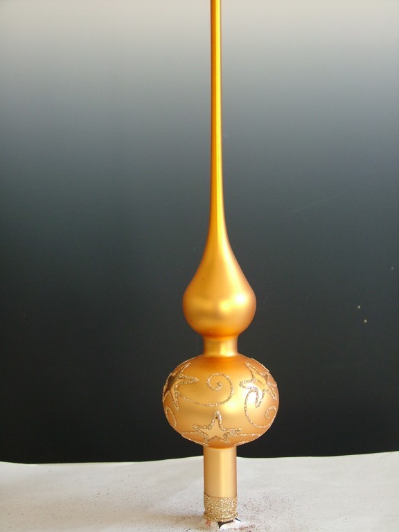 +420 731 683 257vanocniozdoby@slezska-tvorba.czSkleněná vánoční ozdoba ve tvaru špice, 1-kulová, hladká, zlatá, mat, hvězdy, velikost koule 6 cm a 7 cm, foto ilustrační