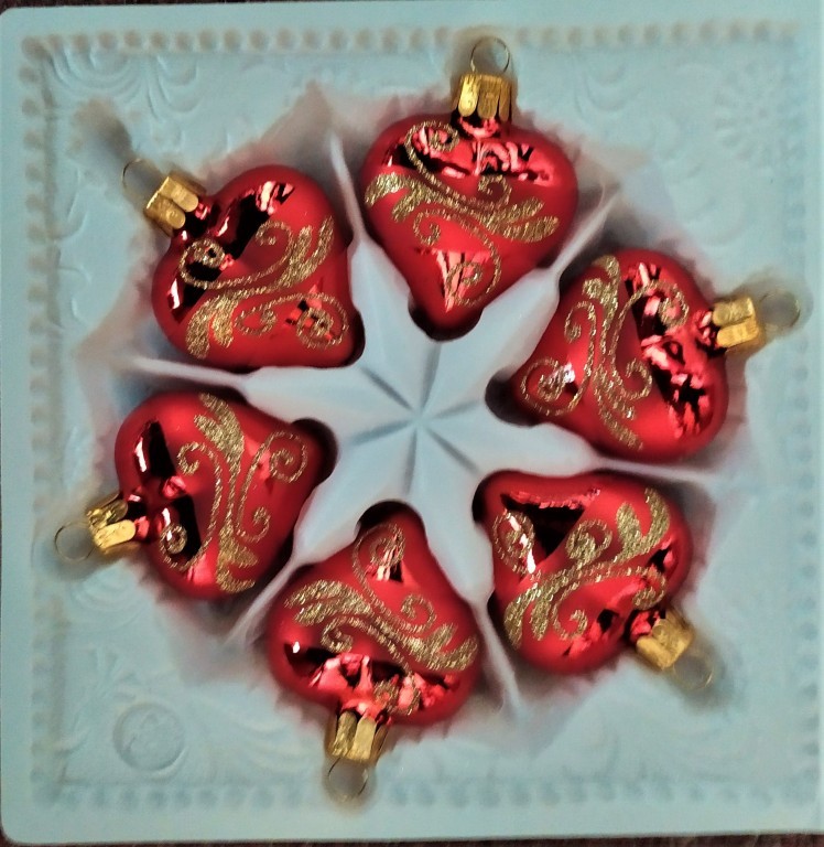+420 731 683 257vanocniozdoby@slezska-tvorba.czSkleněná vánoční ozdoba ve tvaru srdce, forma, hladké, červené, lesk, zlatý dekor, velikost 5,4x5,3 cm, foto ilustrační